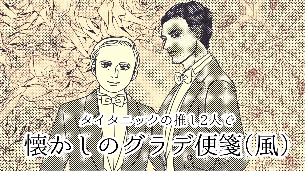 スペースで懐かしの「グラデ便箋」の話題が出ましたので、若い世代に向けて「こんな感じだったのよ」という作例を描いてみました。グッゲンハイム氏とジリオ氏で(笑)。